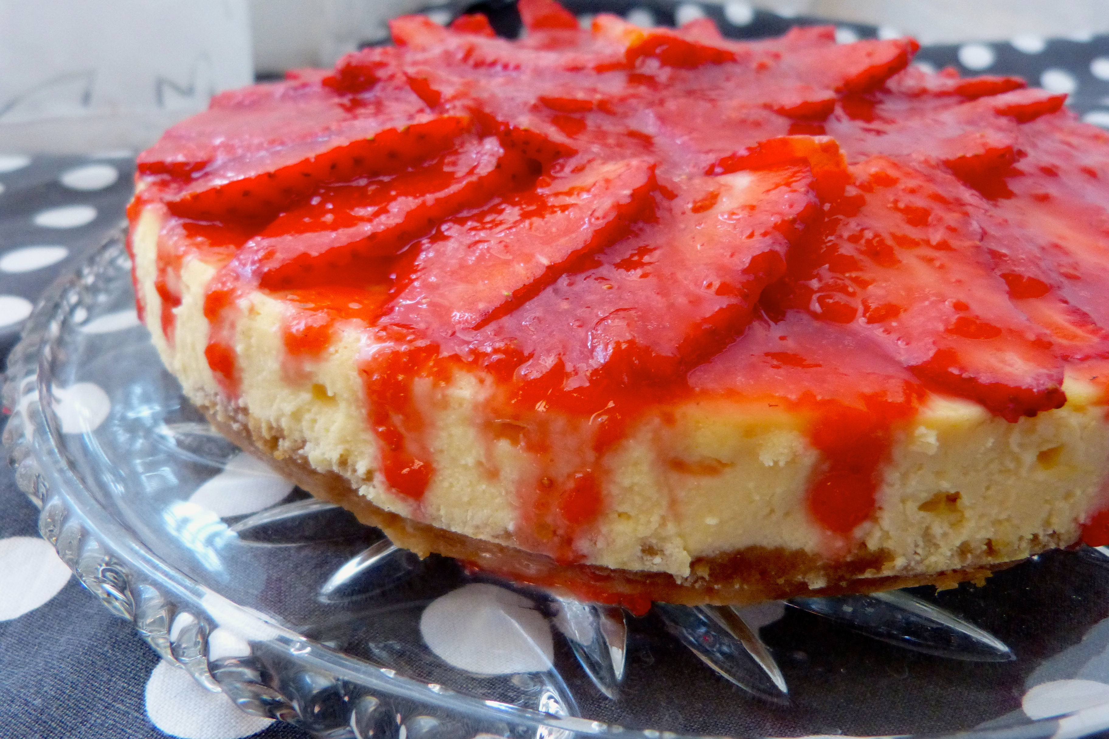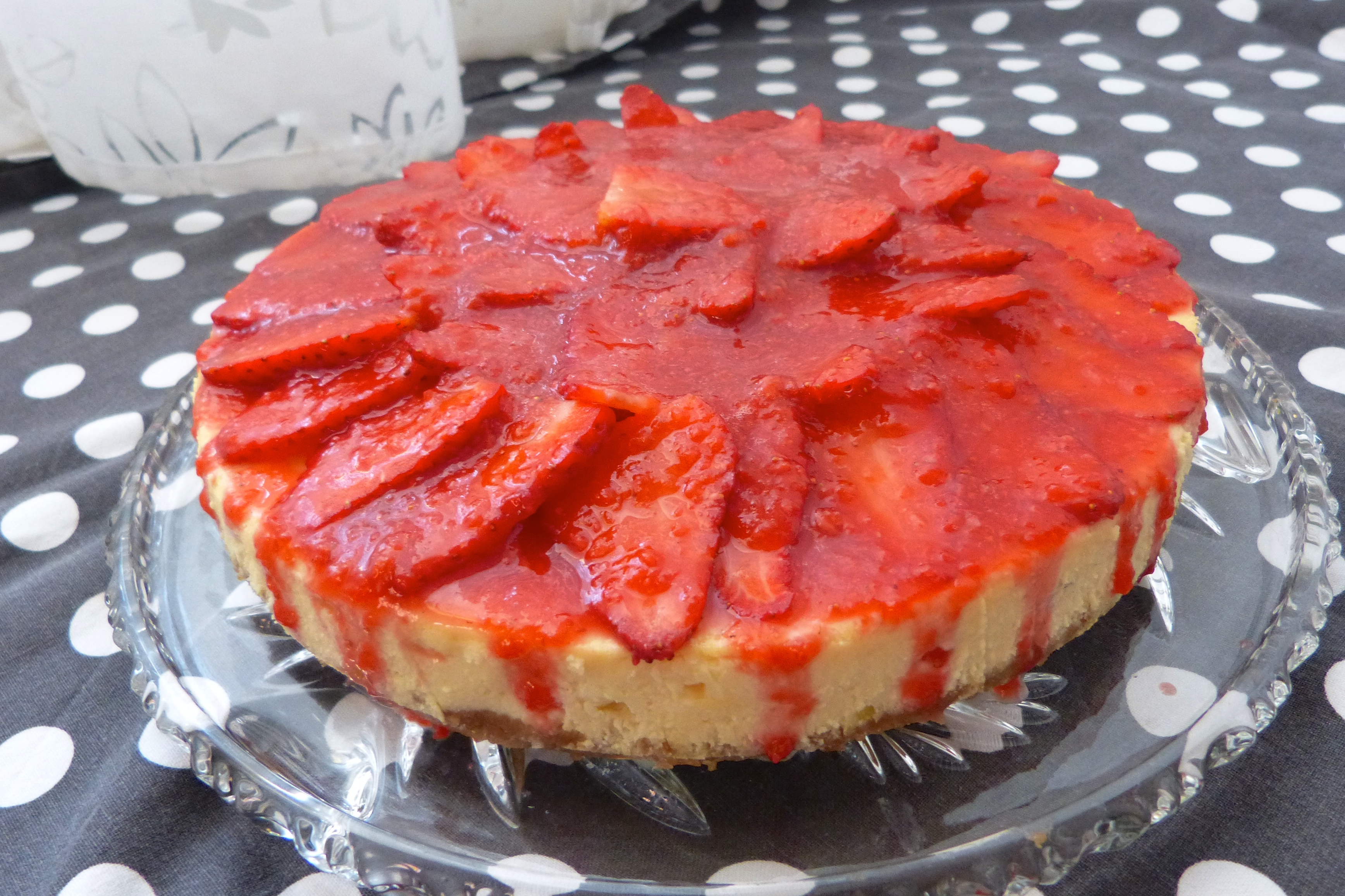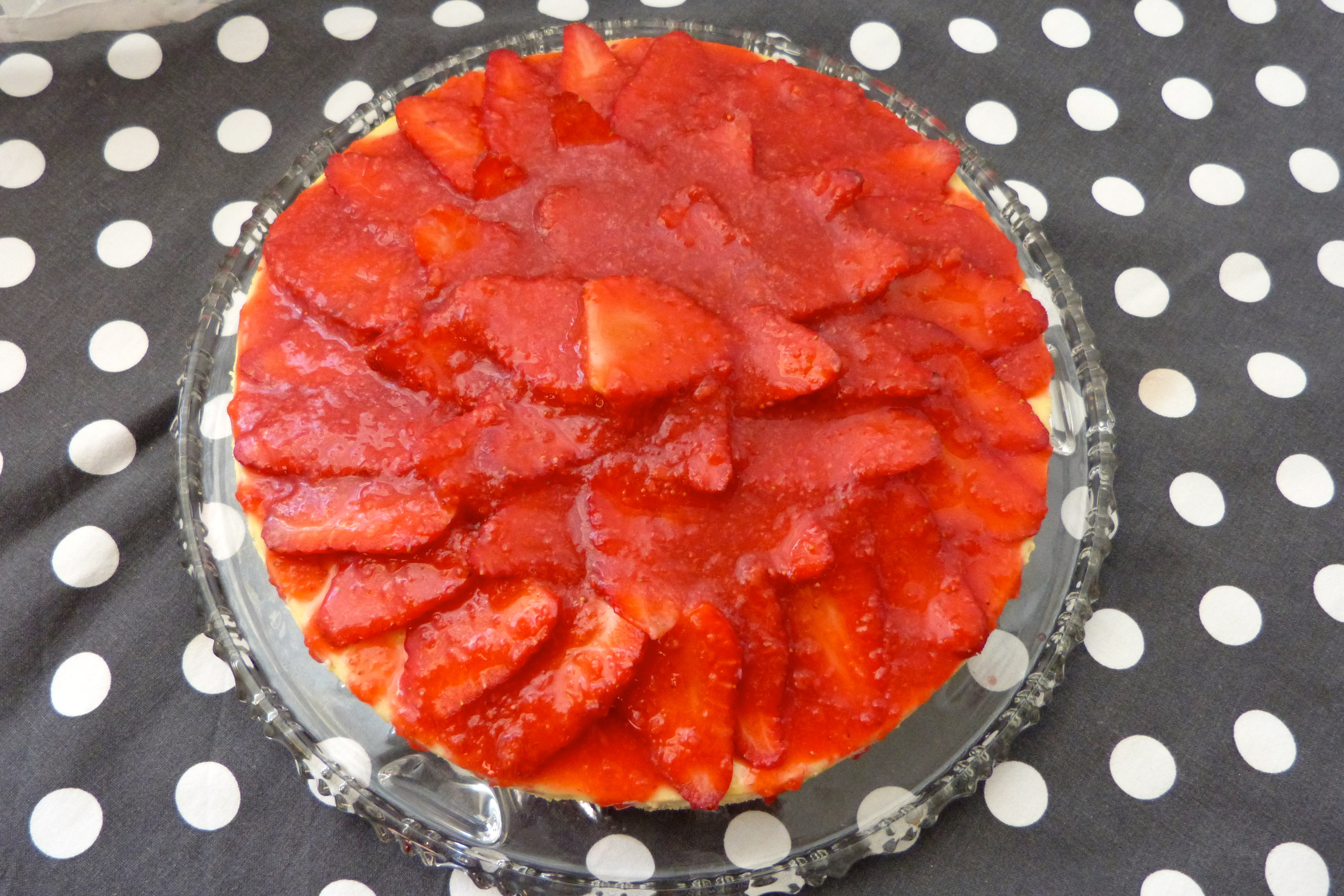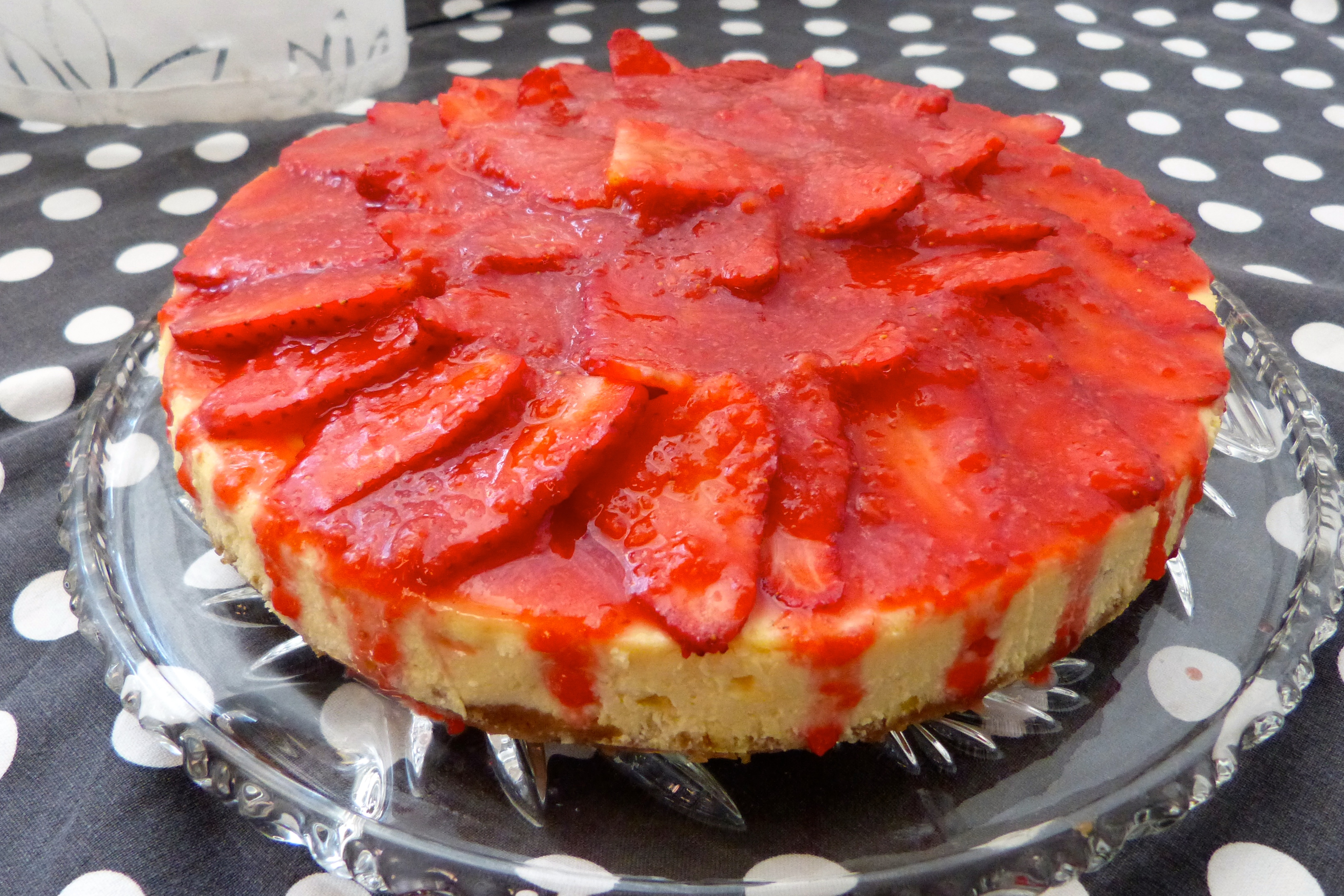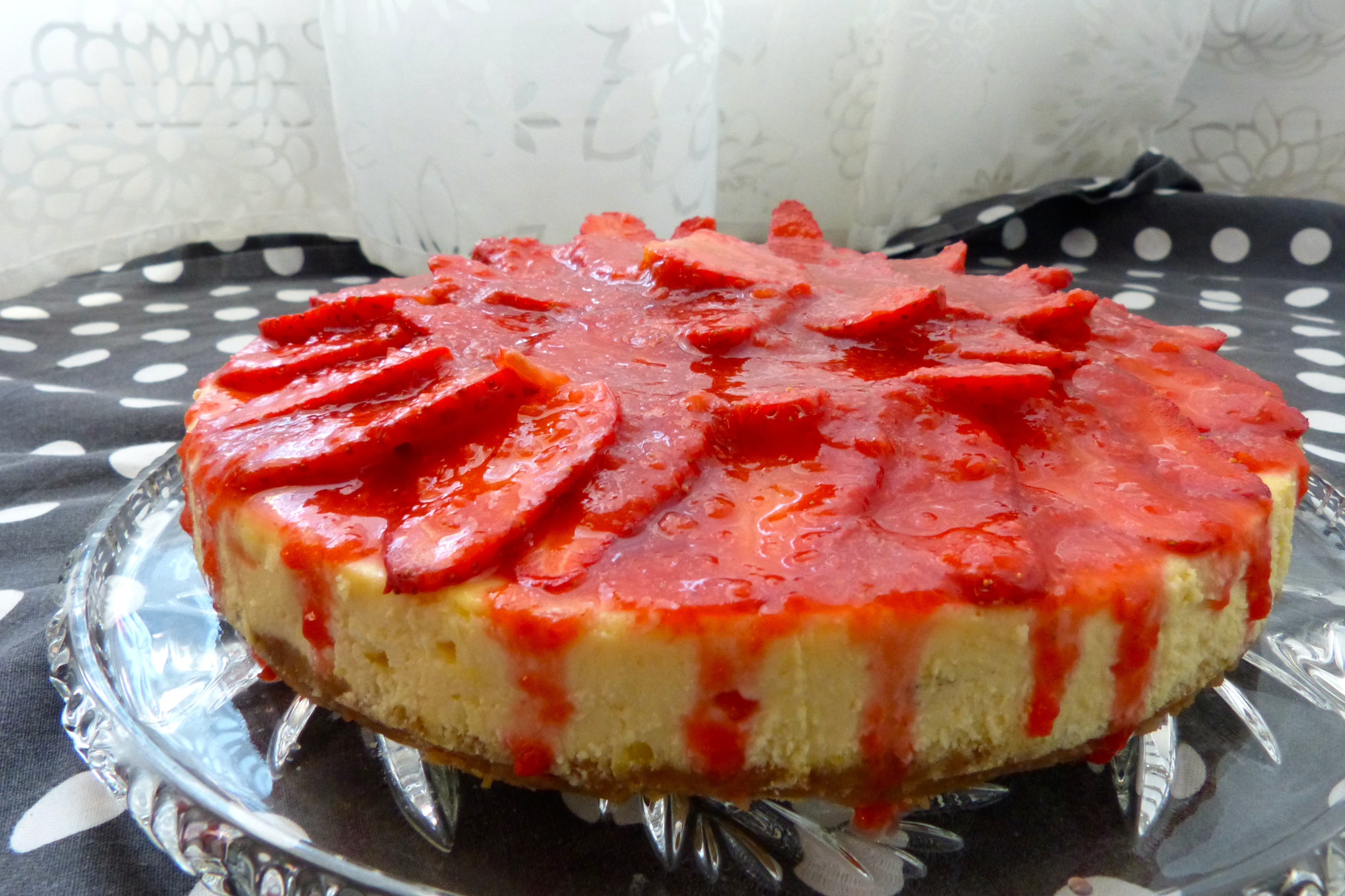 Je l’ai adaptée avec des fraises car on a goûté aux 2 recettes (classique et strawberry) sur place et ce fut mon préféré…Et puis, un cheesecake avec des fraises.. c’est le paradis..